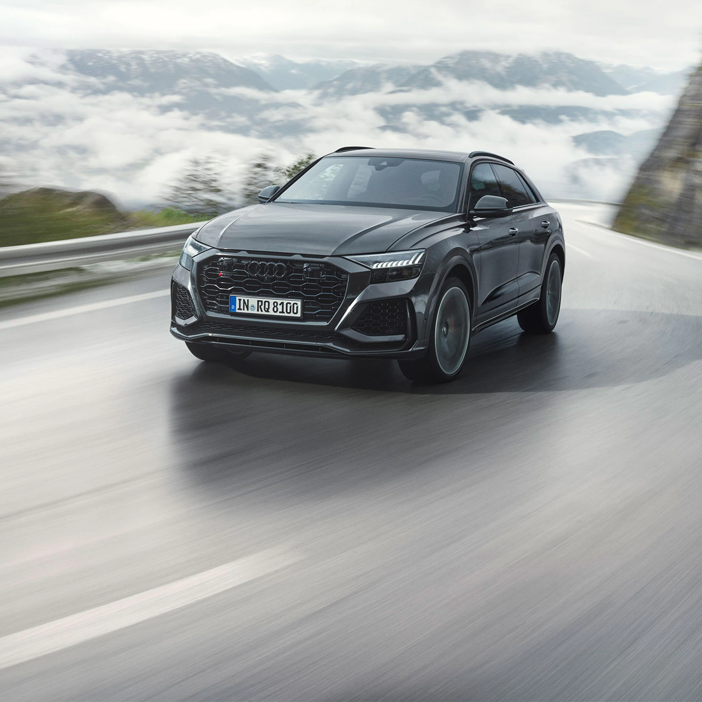 아우디 RS Q8의 콰트로 4륜 구동과 콰트로 스포츠 디퍼렌셜 옵션은 파워를 각 휠마다 선별적으로 배분합니다. 고유의 RS 튜닝을 거친 어댑티브 에어 서스펜션 스포츠, 기민한 반응성과 우수한 핸들링 안정성을 돕는 다이내믹 올 휠 스티어링이 이에 일조합니다.